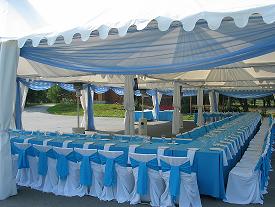 - Красивые шатры, позволяющие отметить мероприятие на свежем воздухе (до 200 человек).